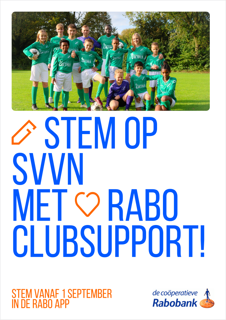 Van 1 tot en met 23 september neemt SVVN weer deel aan RABO clubsupport. Stem via de RABO app en vraag familie en vrienden ook op SVVN te stemmen. Een kleine moeite en elke stem is geld waard voor onze club. Als lid van de Rabobank kun je stemmen via Rabo Clubsupport, zoek op SVVN (SVVN staat genoemd onder regio Noord West Twente).