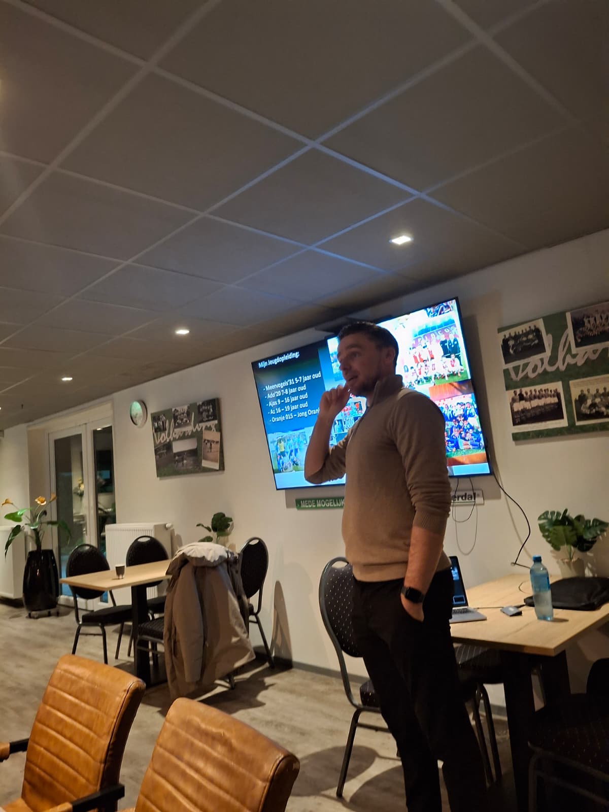 Vervolgens nam Ben ons mee in zijn profcarrière en de verschillende trainers waaronder hij getraind heeft. Zo kwamen o.a. grootheden als Louis van Gaal bij Ajax, Peter Bosz bij Heracles en Arne Slot bij AZ voorbij. Het was dan ook een hele mooie informatieve avond waarbij er ook veel gelachen werd om de mooie anekdotes die door Ben verteld werden.