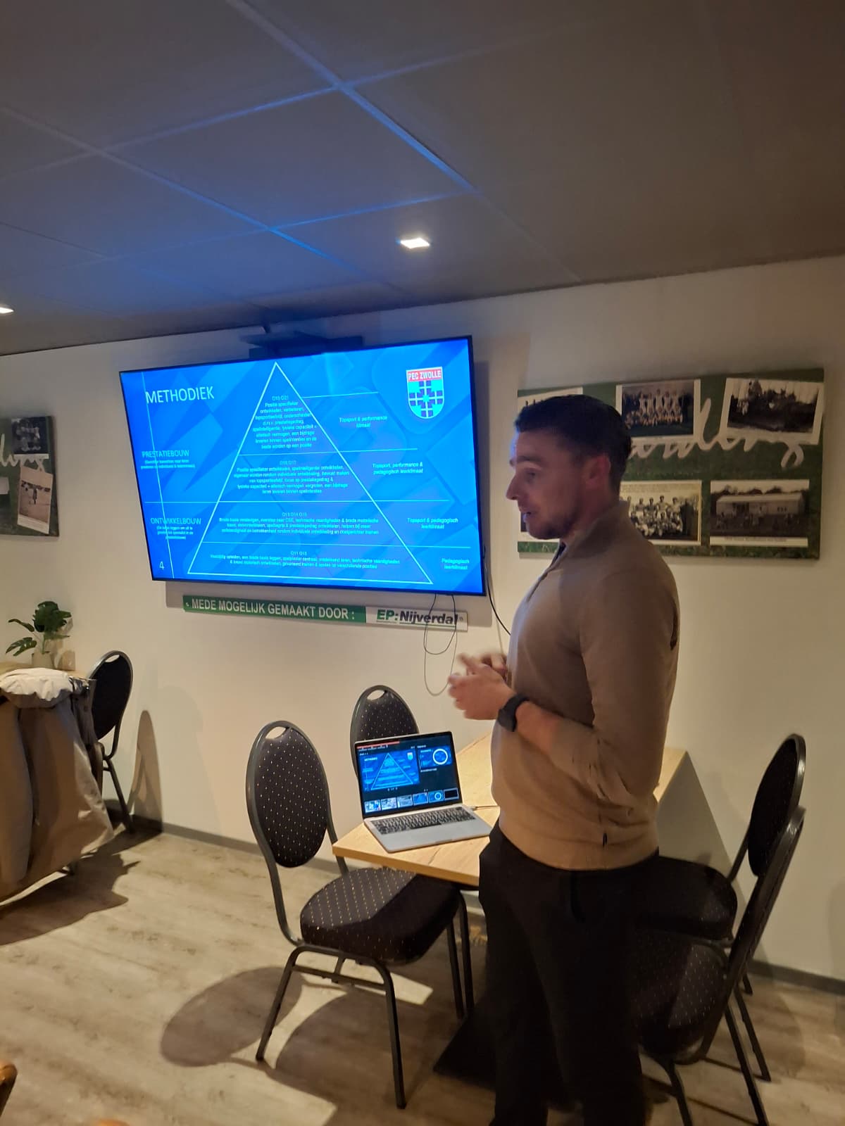 Gastspreker en oud profvoetballer Ben Rienstra nam ons mee in zijn voetballoopbaan. Het begon hoe hij de jeugdopleiding heeft ervaren bij clubs als Ajax, AZ en bij Oranje O15. Dit leverde een mooie interactie op met de jeugdtrainers.