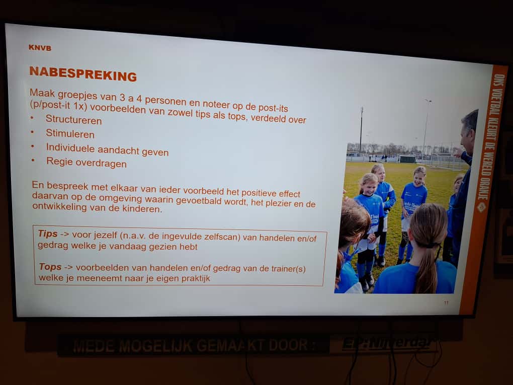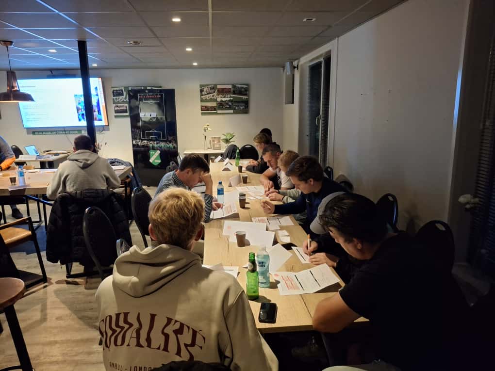 Daarna volgde een praktisch gedeelte op het veld, met dank aan de spelers van onze JO10-groep, die enthousiast meededen. Tijdens het praktijkdeel werden een wedstrijdvorm en twee trainingsvormen uitgevoerd, terwijl de trainers observeerden en aantekeningen maakten.